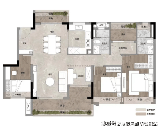 【约82㎡3房2厅2卫】:该户型定位刚改,适合三口之家居住,注重居住舒适度与空间尺度,同时兼顾实用性与景观性。户型配备6米大阳台,270°南望中轴园林,视野开阔,可欣赏社区内的园林美景,高层户型还能望帽峰山,景观绝美,闲暇时可在阳台欣赏美景、放松心情;四开间朝南设计,全天沐浴阳光,室内采光通风俱佳,南北通透,居住舒适度极高;主卧配备双飘窗,增加空间通透性的同时,也能享受更多阳光与景观,提升居住体验;户型布局合理,动静分区清晰,客厅、餐厅相连,空间开阔,三个房间大小适中,主卧空间宽敞,配备独立卫生间,私密性强,次卧可作为儿童房或客房,满足家庭多样化需求,是刚需向改善过渡的优质选择。