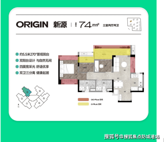 【约74㎡3房2厅线卫】:该户型是项目的刚需爆款户型,主打“小面积、大功能”,完美适配单身人士或小两口居住,性价比拉满。户型布局紧凑,空间利用率极高,3房2厅线卫设计,打破小面积户型“单卫”的局限,刷牙、如厕不用排队,提升居住便利性;配备5.5米大阳台,270°无敌视野,既能保证室内采光通风,又能欣赏社区园林景观,闲暇时可在阳台喝茶、看书、晾晒,享受惬意时光;四开间采光设计,全天沐浴阳光,室内光线充足,居住舒适度高;超83%标准层实用率,每一寸空间都得到充分利用,没有浪费,性价比极高,是预算有限刚需人群的首选户型。
