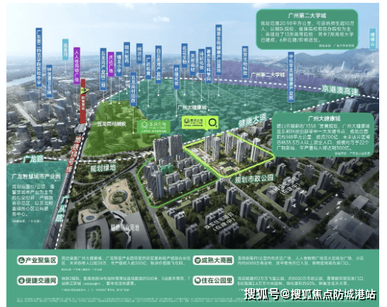 5. 广州第二大学城持续扩容,带动钟落潭板块人文与产业升级:广州第二大学城目前已有13所高等教育院校入驻,后续将持续引进优质高校,进一步扩大规模,带动区域人文素养提升与人才集聚;同时,依托高校资源,带动科技、文创等产业发展,与千亿级美丽健康城形成产业联动,推动钟落潭板块全面发展,提升板块居住与投资价值。