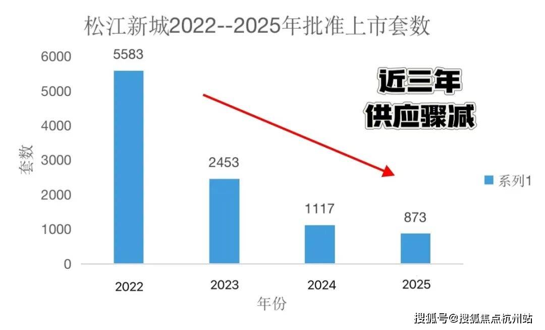 年,松江新城的新房供应为5583套新房。随后逐年走低,2023年2453套,2024年1117套,到了今年仅有837套。