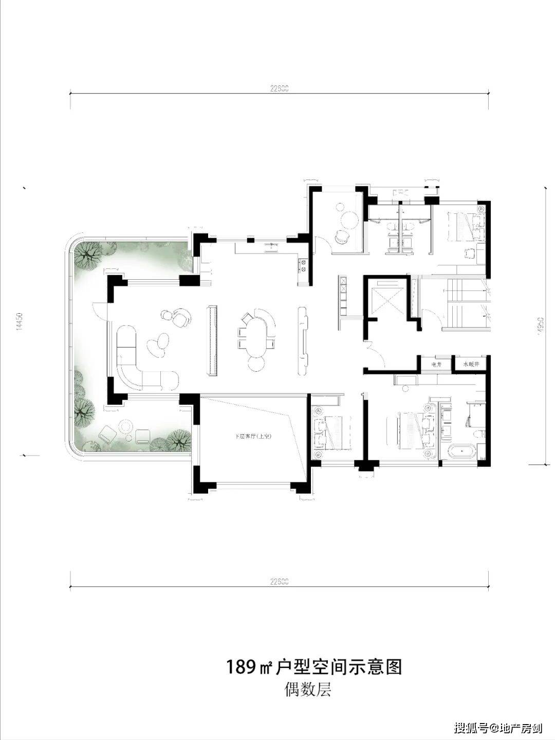 建面约189㎡为(4+1)房2厅3卫设计,不仅采用U型大露台设计(偶数层)+270°瞰景端厅,同时还采用了市面上豪宅最流行的挑空设计,极具创意性。