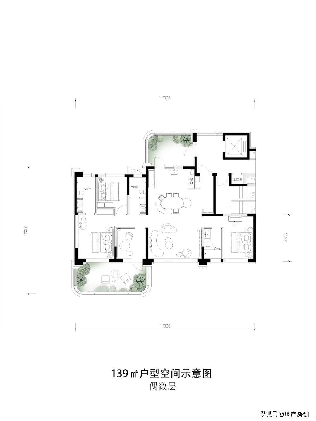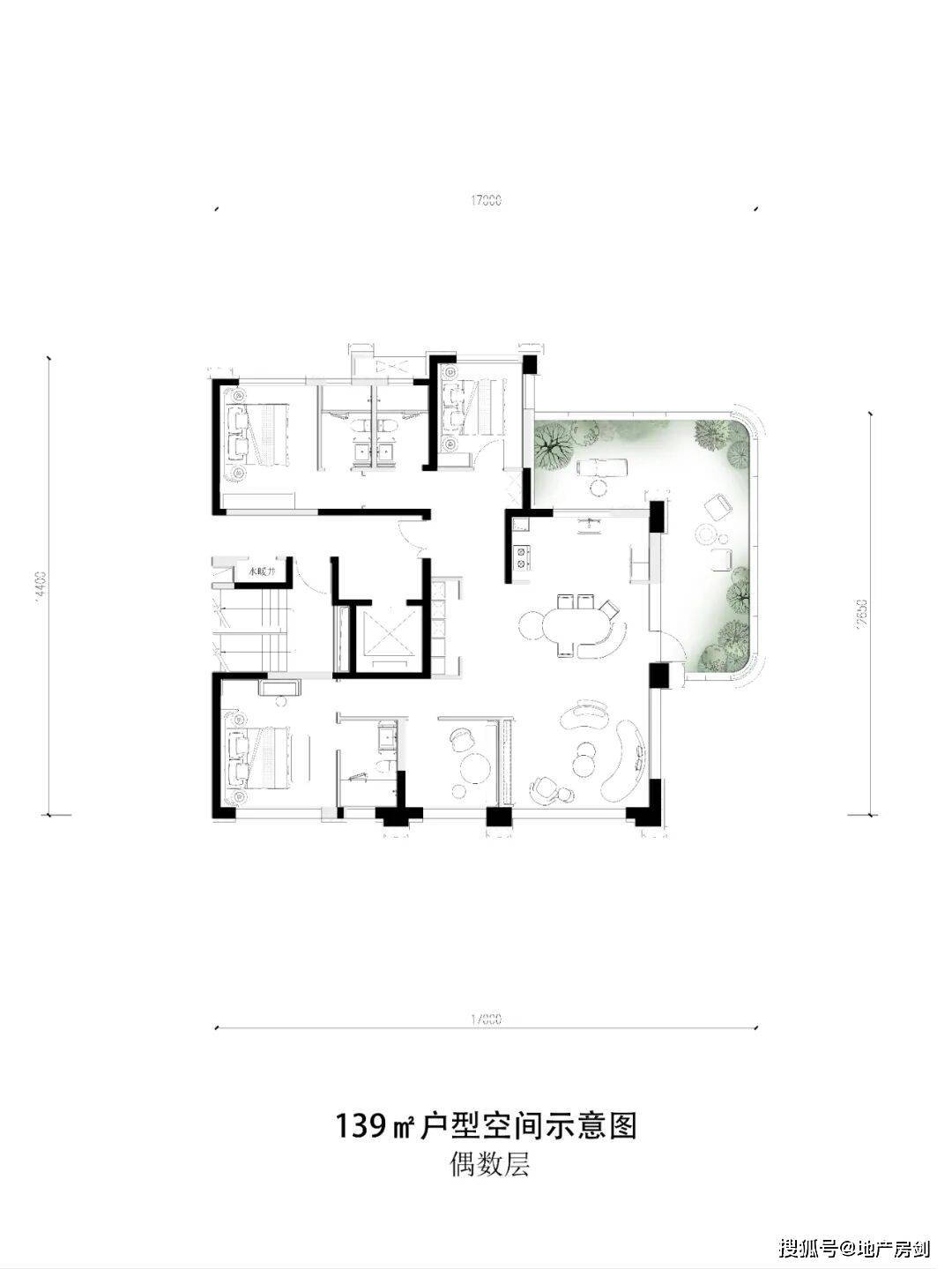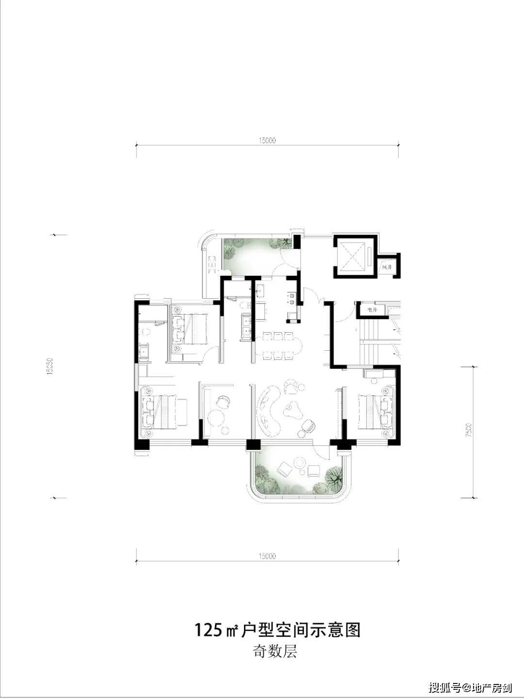 四开间朝南,面宽达到了约15米,南向三卧室,无论奇、偶层南北双露台,直接将这一面积段的产品力拉至制高点。