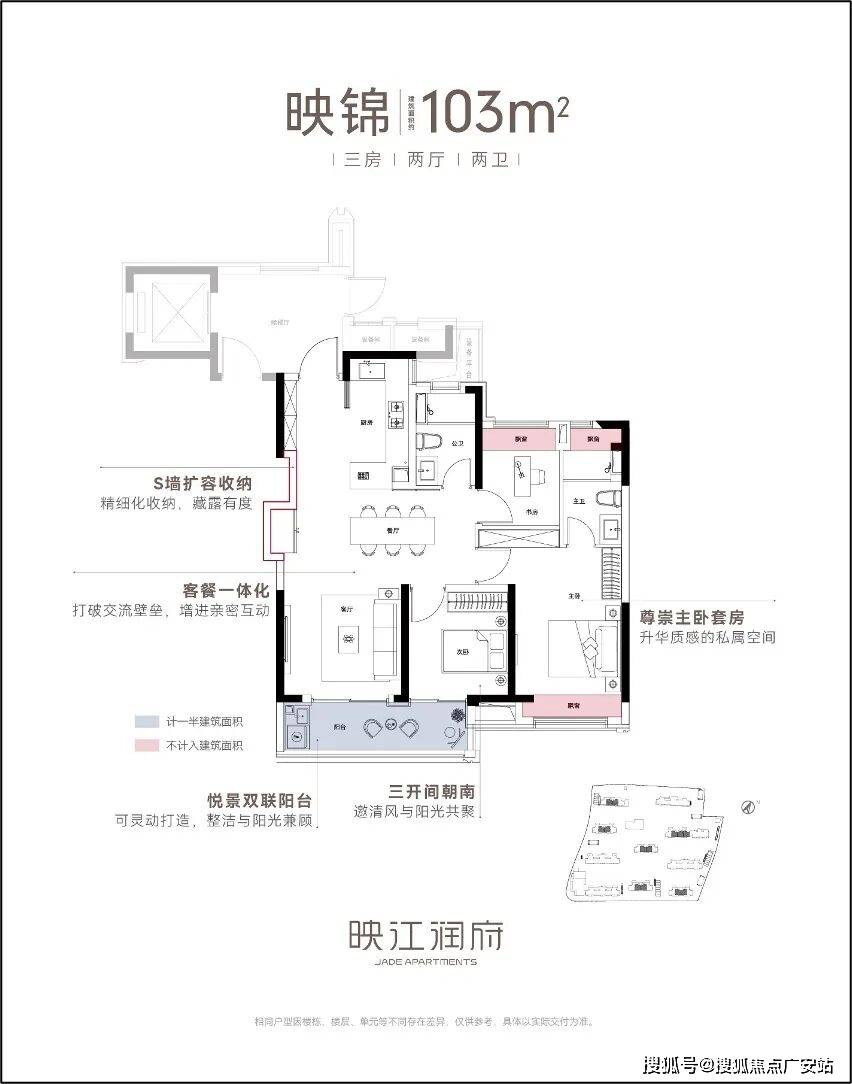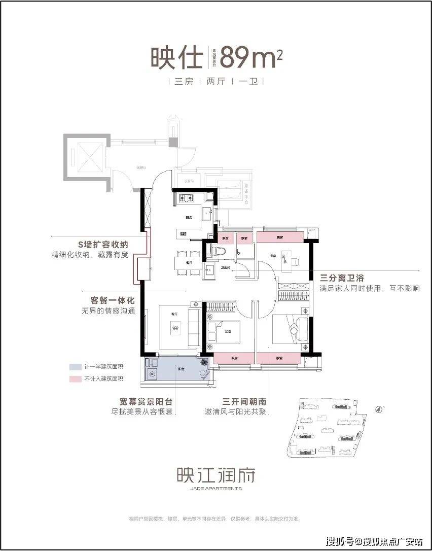 作为华润置地海派3.0作品,映江润府的卷,更在于其硬核的产品力,尤其在户型的设计上,堪称卷到极致。映江润府全盘仅规划89和103两种户型,每个都堪称王炸。