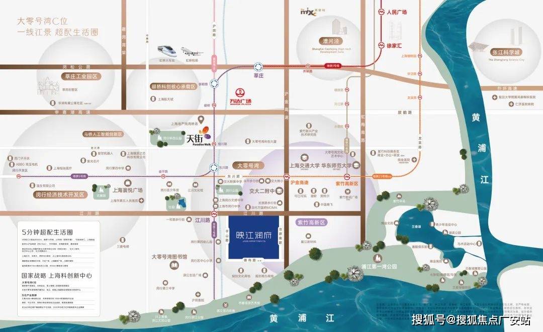 【华润置地·映江润府】所在的江川街道作为“大零号湾”发源地、核心区、建成区的优势,完善产业生态,将打造产城融合、科创集聚、服务完善、大气时尚的现代化滨江新城区!(信息来源于科创闵行)