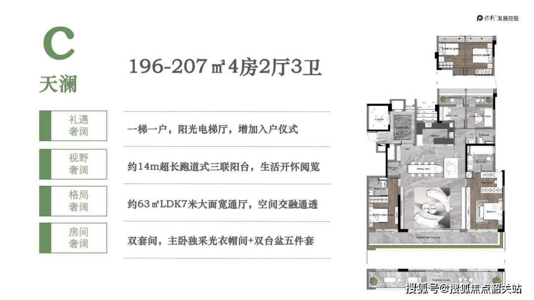 从对奢阔空间的追求,到全南向专梯专户豪宅的完美呈现,保利湖光悦色以科学的户型设计,精准契合高净值人群的深层居住需求。官方产品规划公示显示,项目主打建面约120-200㎡低密专梯大宅、180-360㎡湖滨叠境两大产品系列,所有户型均采用全南向设计,配备专梯专户配置,保障居住的私密性与尊崇感,为业主安放舒适奢华的人生。