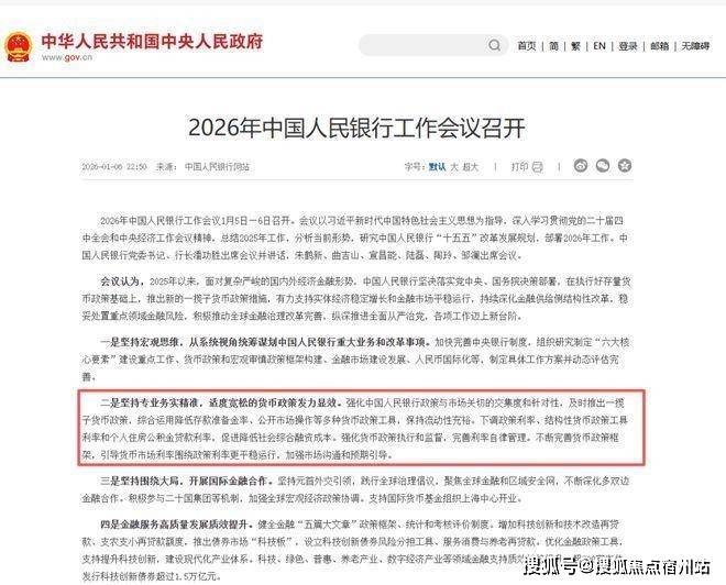 2026年中国人民银行工作会议召开,会议指出,我国将继续实施适度宽松的货币政策,把促进经济稳定增长、物价合理回升作为货币政策的重要考量,灵活高效运用降准降息等多种货币政策工具,保持流动性充裕,保持社会融资条件相对宽松,引导金融总量合理增长、信贷投放均衡。