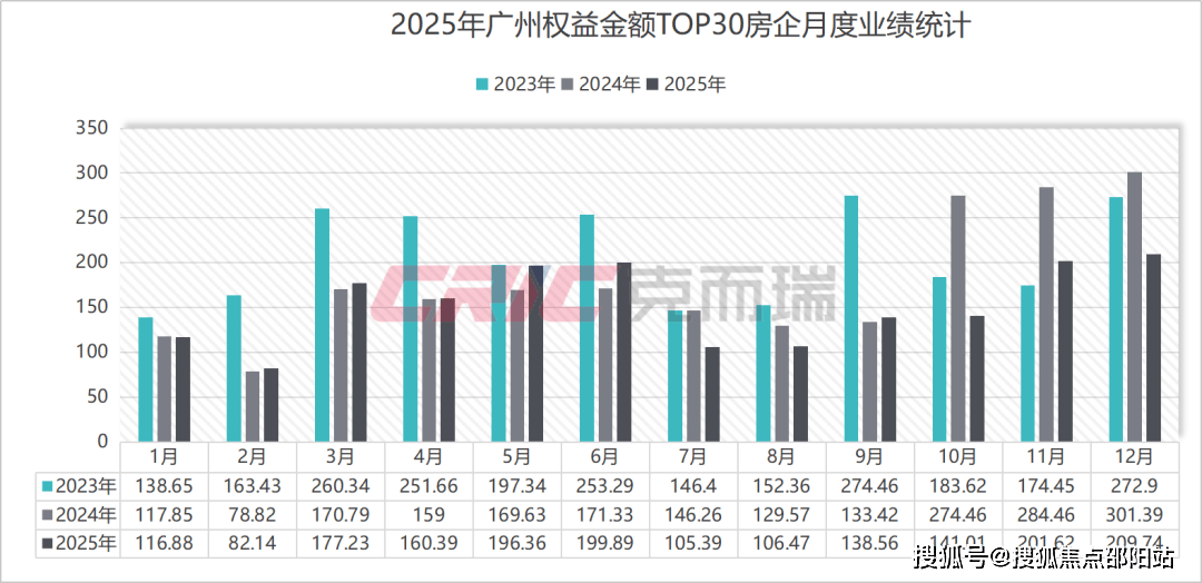 其中12月权益金额TOP30房企业绩规模209.74亿元,同比减少30%,环比增长4%,同时也是2025年以来TOP30房企房企月度业绩突破200亿元的第二个月。