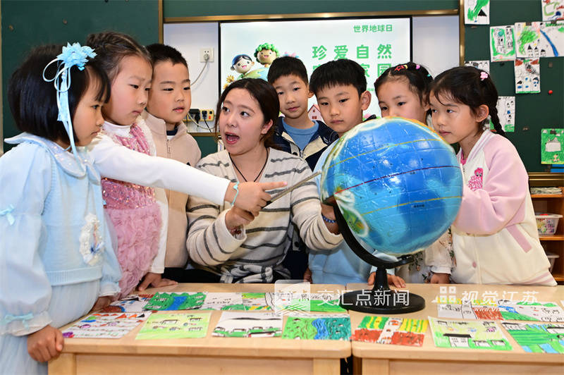计海新08:40摄 10:45上线日,太仓市梅园幼儿园老师为孩子们讲解地球仪知识。当日是世界地球日,太仓市梅园幼儿园通过讲解地球常识、绘画美丽家园、开展知识互动问答等活动,引导孩子们树立爱护环境、保护地球、节约资源意识。