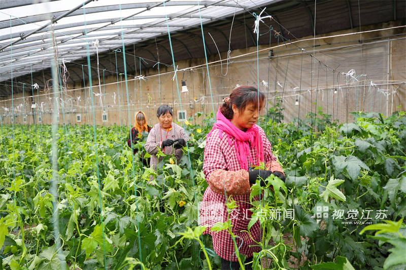 徐卫 窦双双10:13摄 10:58上线日,连云港市海州区,在江苏农垦岗埠农场的蔬菜种植大棚里,菜农们对第二茬丝瓜进行降藤蔓、打杈、疏花等作业,促进丝瓜生长挂果,为第二茬丝瓜稳产增产打好坚实基础,大棚里一片忙碌景象。