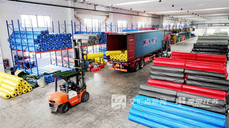 10:32摄 13:28上线日,位于海安市胡集街道的江苏泓茂体育科技股份有限公司生产车间内,工人们开足马力赶制人工草坪外贸订单,一批批产品正远销中亚市场。