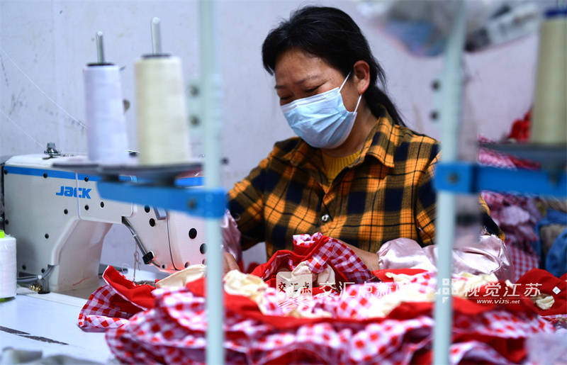08:22摄 09:20上线日,淮安市洪泽区东双沟镇青云社区,众多农家嫂在社区“微工厂”加工出口服装、网店订单宠物服饰,挣钱和照顾老人小孩“两不误”。